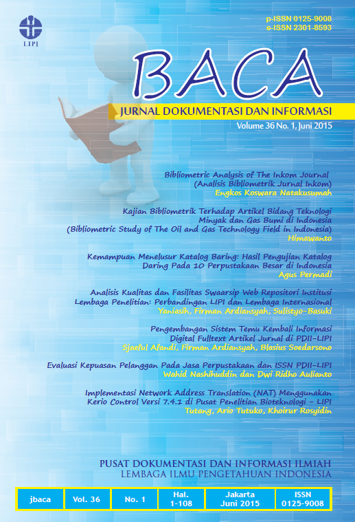 KAJIAN BIBLIOMETRIK TERHADAP ARTIKEL BIDANG TEKNOLOGI MINYAK DAN GAS BUMI DI INDONESIA (BIBLIOMETRIC STUDY OF THE OIL AND GAS TECHNOLOGY FIELD IN INDONESIA)